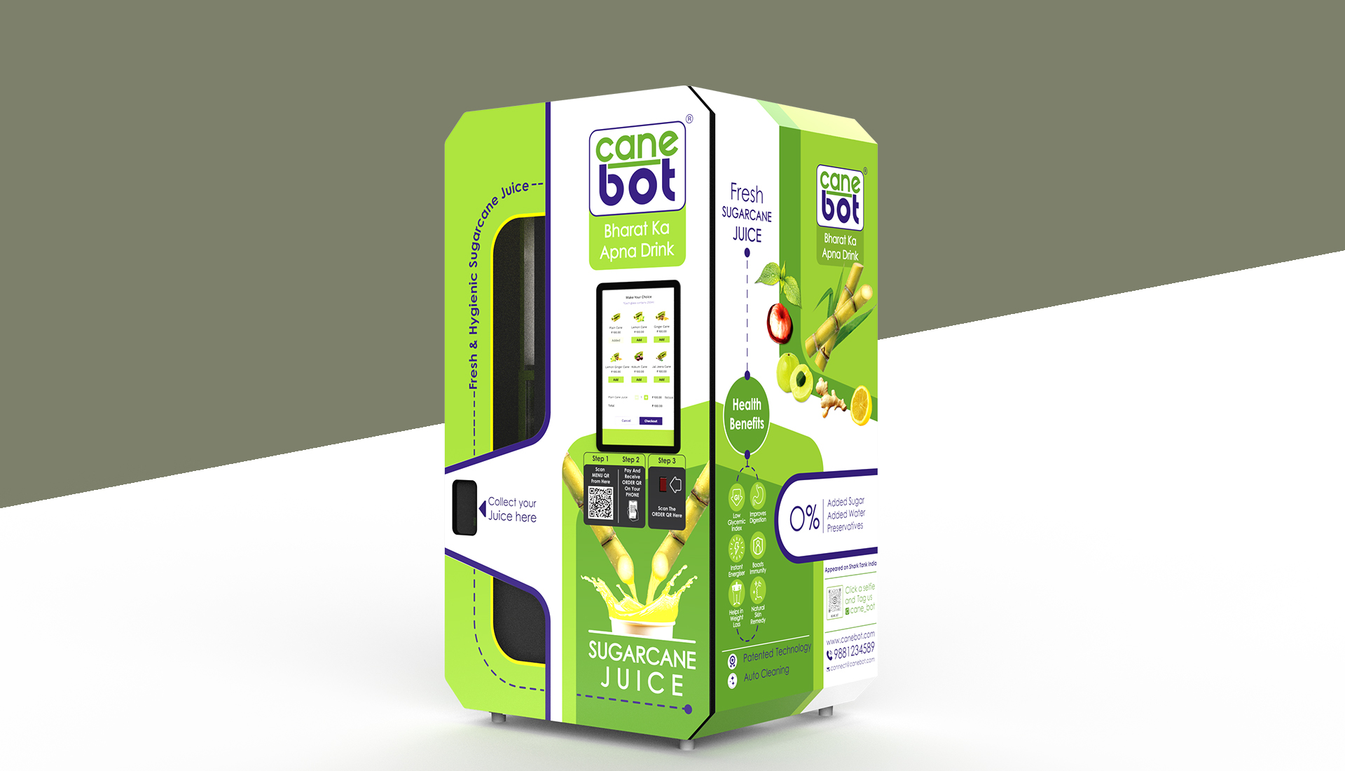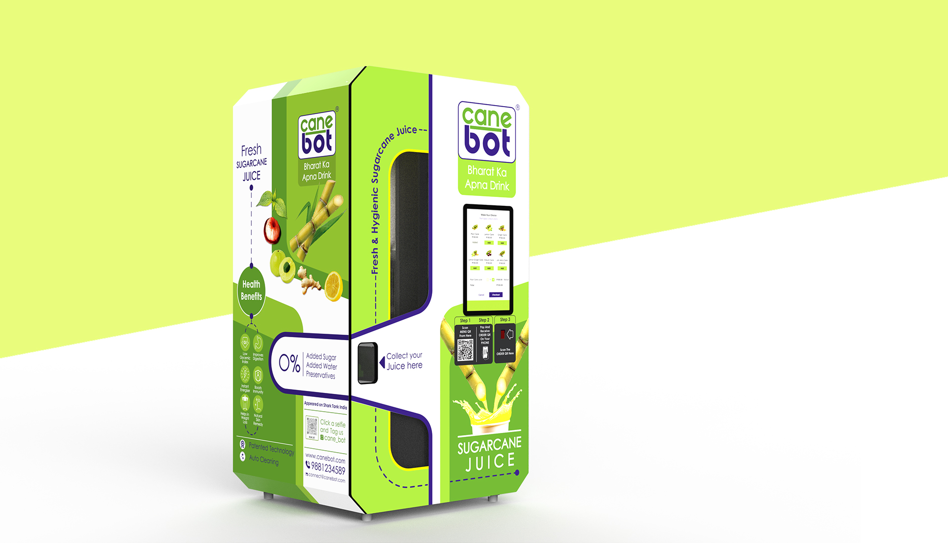 Canebot partnered with Keydesigns to design their fully automated sugarcane juice vending robot.